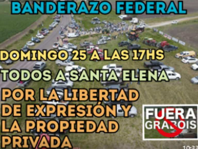 Además, productores y usuarios de redes sociales convocaron a un «banderazo federal» por «la libertad de expresión y la propiedad privada», para hoy a las 17, y que culminará justamente en el campo del conflicto.
