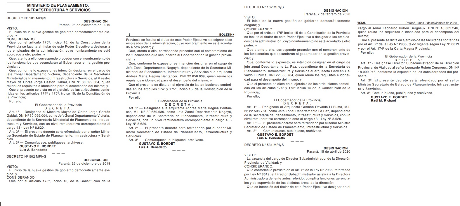 Este 2 de noviembre, por ejemplo, se publicaron nombramientos de hace casi un año. Así como se lee: aparecieron designaciones que datan de diciembre de 2019 y de febrero de este año.