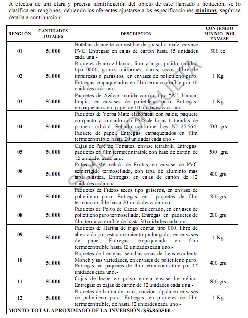 En la licitación no se detalla qué fin tendrán estos módulos alimentarios, y es importante que la ministra no solo invierta el dinero, sino que también controle que lleguen al destino prefijado y que efectivamente sirvan para que una familia pueda tener un plato de comida en su mesa.