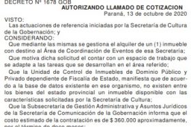 CompartirLa secretaría de Cultura, una de las más criticadas por los privados del sector que sufren con la pandemia, se reactiva con una cotización por más de 360 mil pesos. La provincia de Entre Ríos está en «emergencia económica, financiera, fiscal, sanitaria, administrativa y previsional», según una ley aprobada este … Sigue leyendo Las prioridades de la emergencia: un inmueble para “coordinación de eventos”