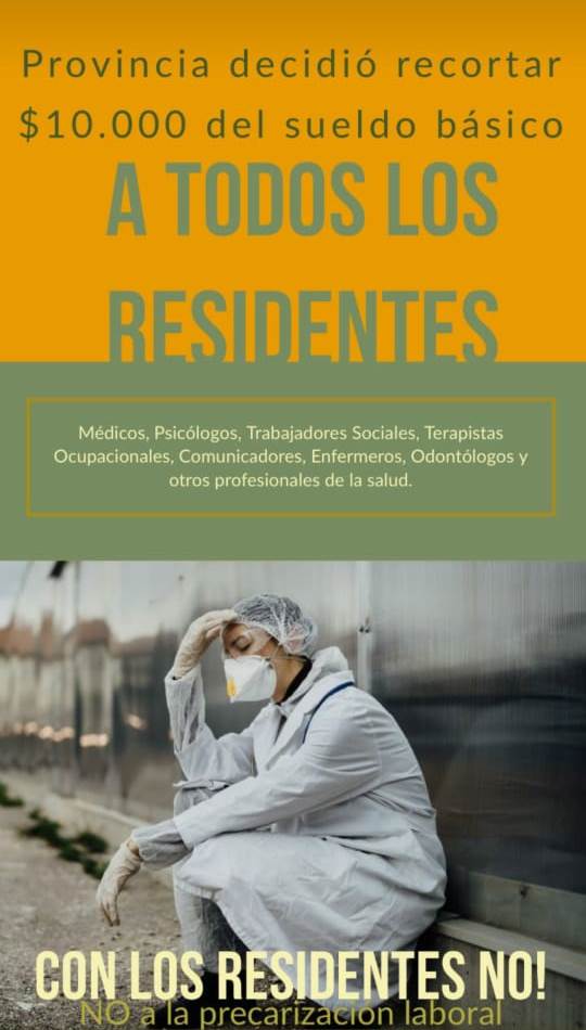 A los residentes, además, la provincia les recortó 10 mil pesos y ahora, dejará a miles de ellos en la calle.