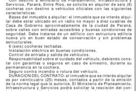 CompartirEl gobierno provincial necesita seis cocheras que se ubiquen en pleno centro de Paraná. En medio de un fin de año muy complicado para todos los sectores, los gastos del gobierno provincial no cesan y ahora pidió cotización para cocheras para el ministerio de Planeamiento, Infraestructura y Servicios. Se trata … Sigue leyendo Más cocheras para la impresionante flota de vehículos oficiales del gobierno de la honestidad y la transparencia