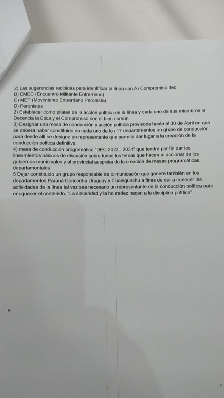 La mesa de conducción de esta corriente quedó conformada con Martínez Garbino, Moine,, Alasino, Garcilazo, Rosi , García y Leisa.
