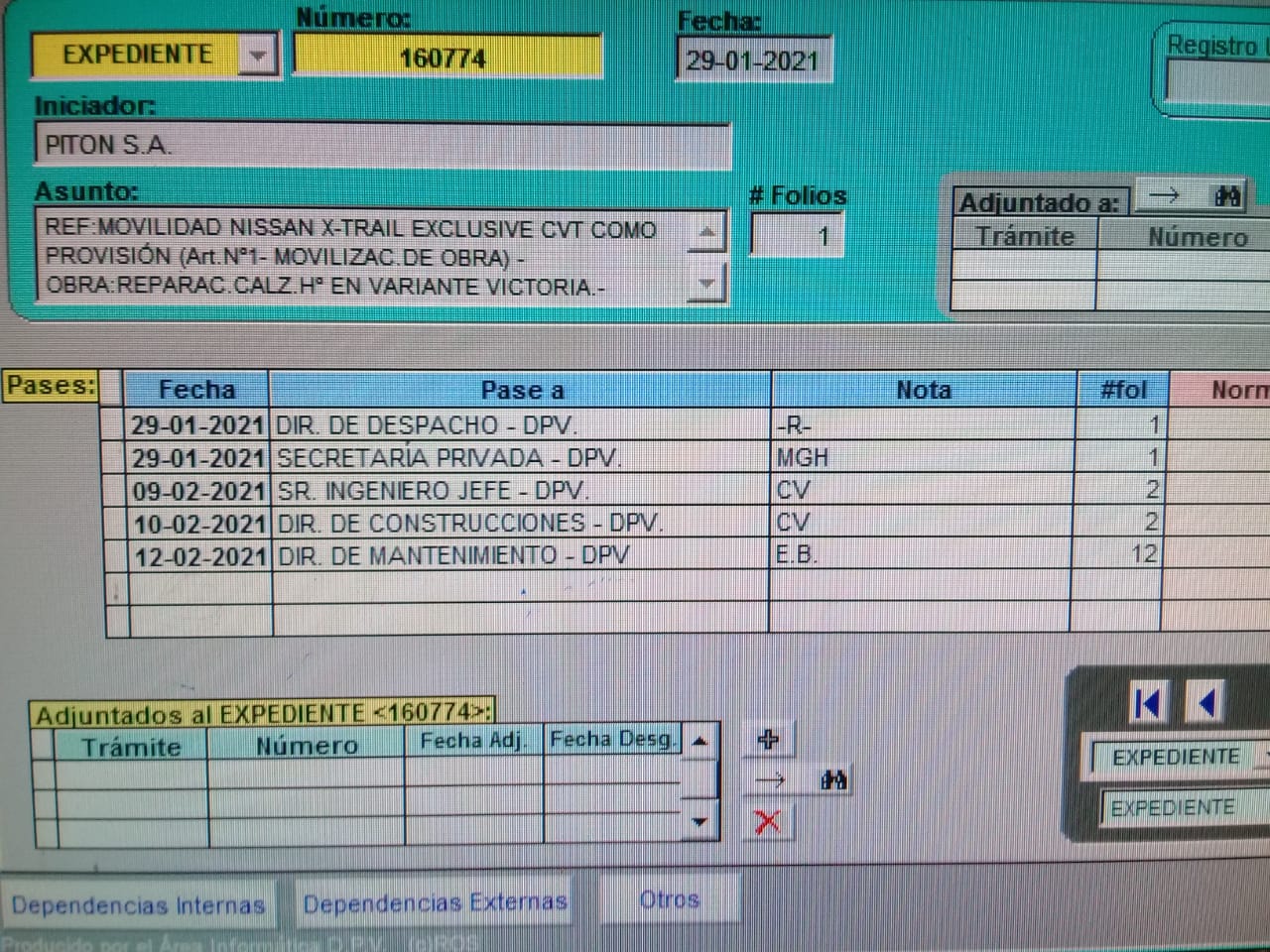 Según el expediente al que pudo acceder este Portal, el vehículo fue adquirido para “movilización de obra” de una reparación de ruta en Victoria, a cargo de la empresa constructora Pitón SA.