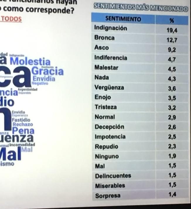 En esa medición, las palabras que se mencionan con mayor frecuencia son “indignación”, “bronca” y “asco”.