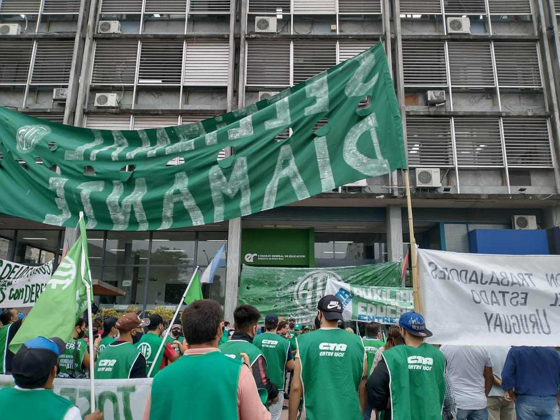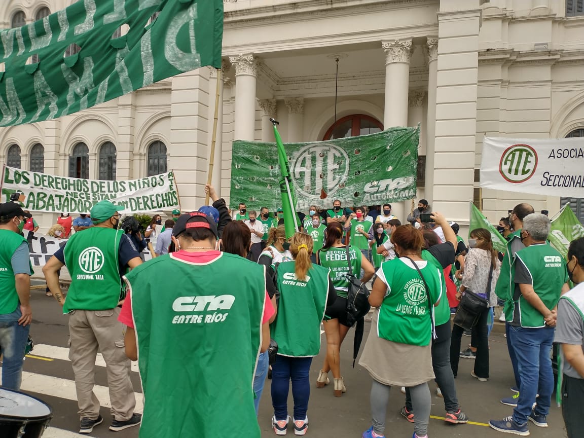 Los gremios se congregaron este viernes frente a Casa de Gobierno en profundo rechazo a la propuesta salarial del gobierno entrerriano.