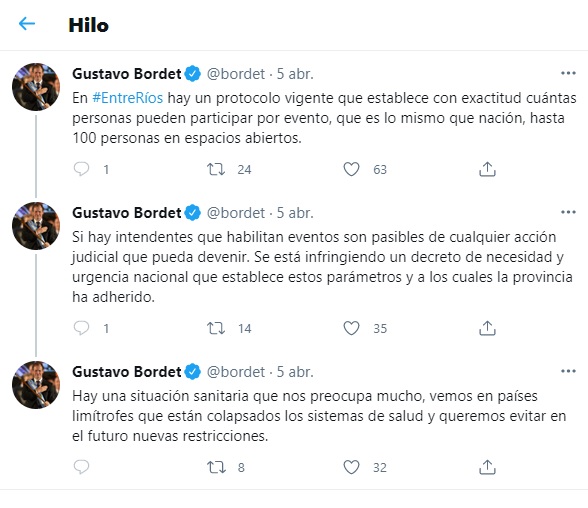 Ahora, a pesar de que Bordet acusa a los intendentes de no seguir las medidas de prevención, es su propia gestión la que apoya los eventos en los que es prácticamente imposible controlar que se tomen los recaudos necesarios.