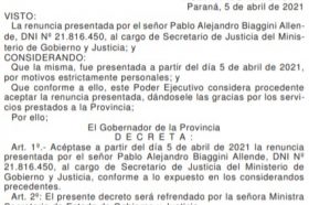 Salió el decreto de renuncia de Biaggini de la Secretaría de Justicia