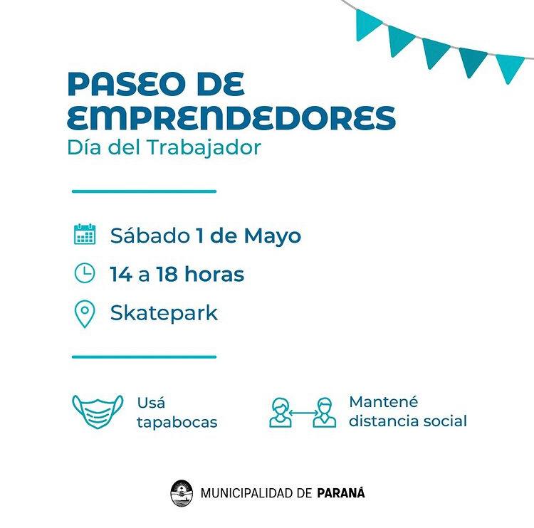 El municipio de Paraná anunció por diferentes medios una feria de emprendedores que se realizará por el día del trabajador este sábado 1° de mayo.