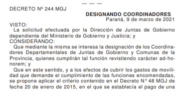 El gobierno provincial publicó en el Boletín Oficial de la provincia la designación de nuevos coordinadores departamentales de junta de gobierno.