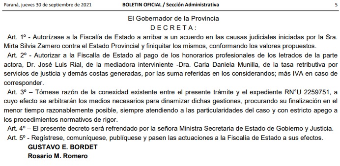 El expediente se tramita en el Juzgado Civil y Comercial N°1 –del Dr. Coglionesse, juez titular y de concurso – y se caratula “ZAMERO SILVIA MIRTA c/ ESTADO PROVINCIAL SGER S/DESALOJO”, pero además hay un segundo que se caratula “ZAMERO SILVIA MIRTA c/ ESTADO PROVINCIAL SGER S/DAÑOS Y PERJUICIOS”. Así es, no uno, sino dos expedientes judiciales. Dos expedientes que implican: doble gasto de abogados, dobles honorarios a la ganadora (en este caso el abogado de la Sra. ZAMERO) y doble gasto de costas de juicios.