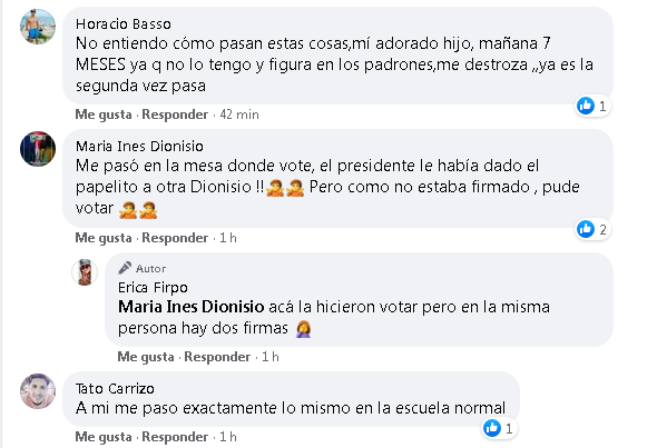 Lo más curioso del caso, que fue denunciado ante las autoridades electorales, fue cuando se publicó a través de las redes sociales. Allí comenzaron a aparecer casos similares en diferentes mesas de la ciudad de Victoria. A todo esto, no habría habido ninguna suspensión de ningún tipo luego de conocidas las denuncias de irregularidades.
