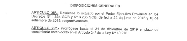 Pero parece que la “Seguridad Social” era verdaderamente importante para el gobierno provincial, aportaba un montón de dinero extra sumado al básico del impuesto, y fue asi que el actual gobierno de Gustavo Bordet decició prorrogar el cobro del fondo. En principio a través de la Ley 10403 (Ley de presupuesto para 2016) el cobro del extra se prorrogó hasta diciembre de 2019.