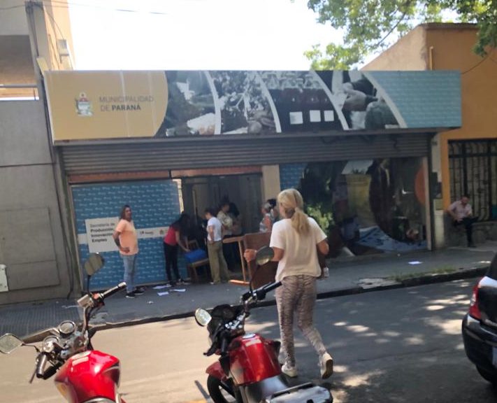 Esta mañana está siendo desalojada, por falta de pago del alquiler, la oficina de la Subsecretaría de Inversión y Empleo de la Municipalidad de Paraná, de calle Colón 115, dependiente de la Secretaría de Hacienda Municipal, que conduce el contador Eduardo «Lalo» Macri.