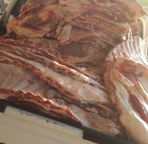 Aquí vendría el simulacro, prendiendo fuego y quemando cajones y cubiertas en vez de la carne secuestrada, sacan fotos de la fogata del humo para documentar la destruccion, luego esta carne y costillares tendrían como destino algunos supermercados y carnicerías para ser comercializados, y el resto a las parrillas de los funcionarios «decomisadores».