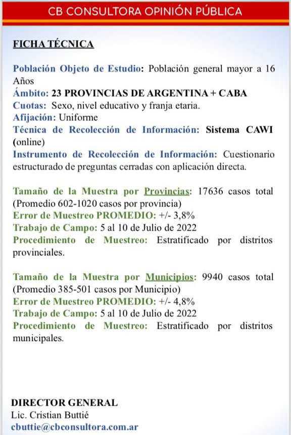 CB es una encuestadora que se caracteriza por medir la imagen de Gobiernos nacionales, provinciales y los de las capitales de cada provincia. En este caso Paraná y la intendencia de Bahl.
