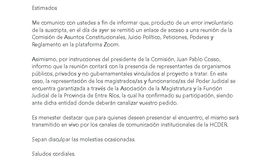 Se había cursado invitaciones a varios profesionalaes que no conformaban la conducción actual de la Asociación de la Magistratura, que ahora será presidida por Cánepa, en reemplazo de la pro-gobierno Gabriela López Arango, pero como ganaron sus amigos nuevamente, ya nadie los puede molestar con derecho.