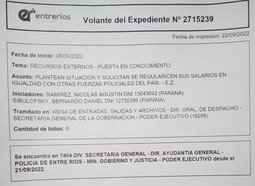 «El reclamo está en manos del gobierno, estamos esperando la opinión de la Ministra Romero y luego el gobernador para que podamos mejorar la situación laboral y salarial».