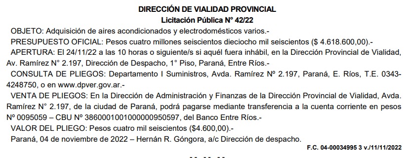 En medio de este contexto de incertidumbre y preocupación, la titular de la DPV, Alicia Benitez, decide gastar casi 5 millones de pesos en la compra de «electrodomésticos«, en su gran mayoría aires acondicionados.