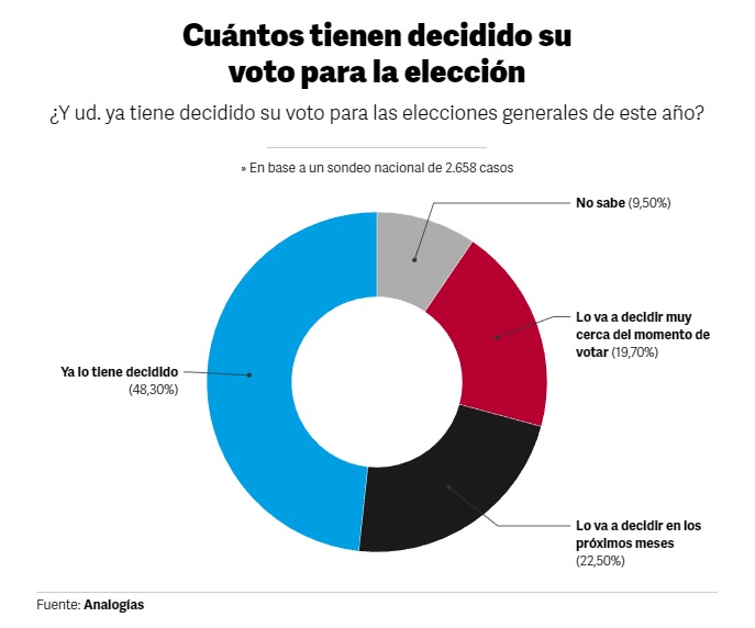 «Finalmente, el 48% de los encuestados manifestó ya tener decidido a qué fuerza va a votar; el resto de las respuestas se reparte temporalmente hasta el día de la elección».