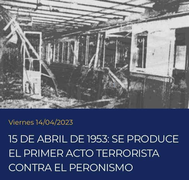 Paradójicamente, en la página web oficial del PJ Entre Ríos recordaban un atentado terrorista. Decidieron hacer alusión a un hecho del año 53, cuando se producía un atentado terrorista contra la CGT que había convocado a Plaza de Mayo, también un15 de abril, pero 20 años antes.