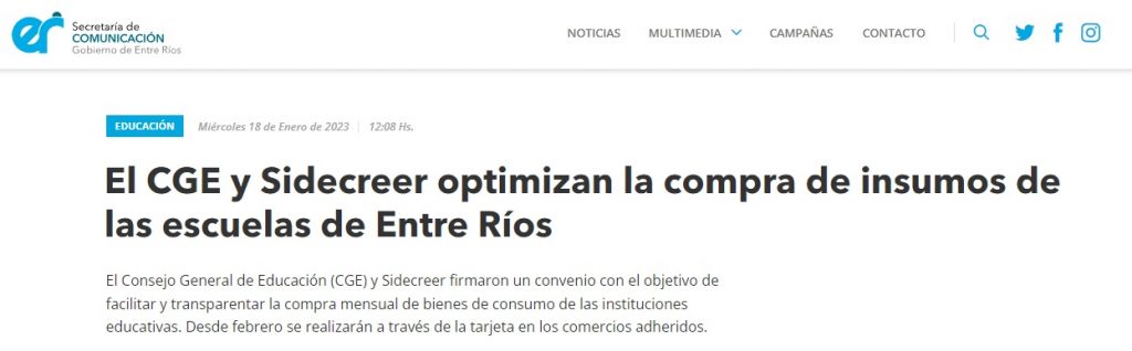 A mediados del mes de enero de este año, el Consejo General de Educación y Sidecreer firmaron un acuerdo por el cual se iba a facilitar y transparentar la compra mensual de bienes de consumo de las instituciones educativas, y así desde febrero se iban a poder adquirir a través de la tarjeta en los comercios adheridos.