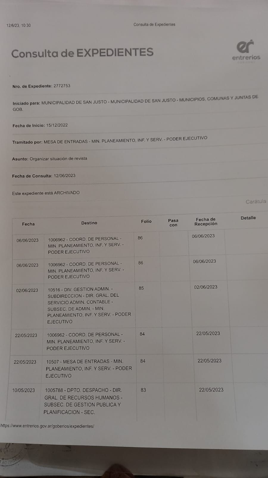 Este decreto sería IMPOSIBLE de encontrar si la intención es buscar expedientes de personal, sobre categorías, cantidad de empleados, y demás detalles, porque está dentro de otro expediente cuya Carátula NADA tiene que ver con el contenido del decreto en cuestión. La Carátula serviría para disuadir, despistar, ya que al ver de qué se trata, en este caso, el Expediente Nro. 2772753 versa sobre la Municipalidad de San Justo, una pequeña localidad de centro este entrerriano.