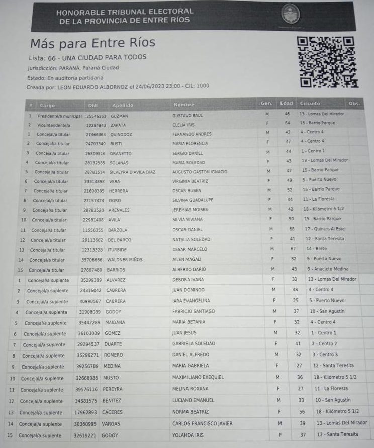 El presidente del PJ Paraná, Gustavo Guzmán, confirmó su precandidatura a intendende de Paraná junto a Clelia Zapata como vice. Competirán con la Lista 66 «Una ciudad para todos».
