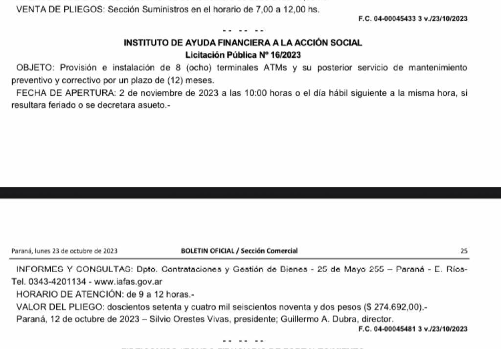 Un Vivas que ya se pasa de vivo, tiene previsto lanzar una licitación para adquirir máquinas ticketeras más el mantenimiento por un año, y él se haría cargo del pago, con dinero del IAFAS. Las máquinas ticketeras son necesarias porque posibilitan que se puedan usar esos tickets en las máquinas de juego, ya que la otra forma de apostar en las máquinas de juego, sean tragamonedas o ruletas automáticas, es a través de billetes que, por viejas y falta de mantenimiento, estas máquinas de juego rechazan algunas denominaciones de billetes.