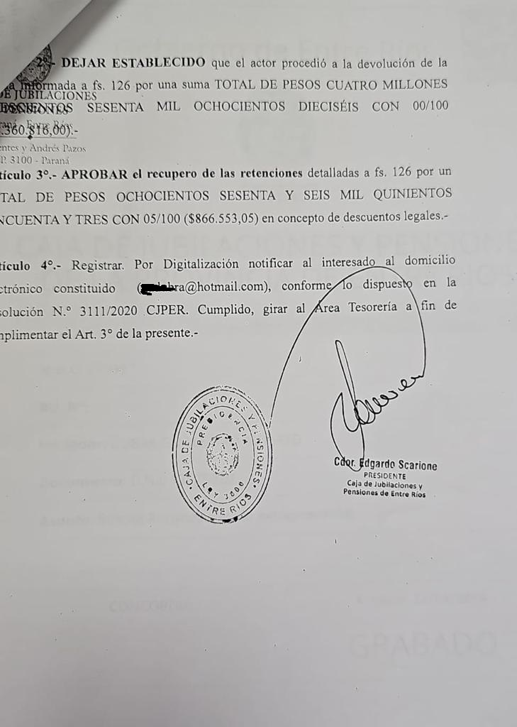 Y finalmente, en la Resolución Nº 3950/2021, del 31 de agosto del 2021, se procede a lo que se asemeja a una sanción, que en realidad es un resarcimiento de un monto que pasa los 4 millones de pesos, con un dólar, en agosto de 2021, que casi llegaba a los $ 100. Además, en esta resolución se establece un recupero de un poco más de $ 800 mil pesos. Y ahí quedó TODO, y Guillermo Dubrá, quedo es su puesto, como Director del IAFAS.