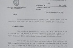 CompartirComo corolario de los 12 años de Vivas al frente del IAFAS, y antes de que termine el mandato de Bordet, con una licitación hecha a medida se acaba de poner en marcha el operativo para que los entrerrianos le donen al empresariado del juego máquinas ATM y dispensadoras de … Sigue leyendo Otro Gran Negociado sobre el cierre de la gestión Vivas-Bordet que hará GANAR más a los empresarios que siempre GANAN