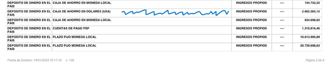 No solo el listado de inmuebles deja azorado a cualquiera, sino que los depósitos bancarios RECONOCIDOS también son para el asombro, siempre considerando que la PRINCIPAL ACTIVIDAD de Gustavo Bordet ha sido la Administración Pública, sin ejercer actividad alguna en la privado. No hay otra fuente de ingresos que no sea la actividad que Bordet ejerció en el Estado, siendo Ministro, Intendente, Gobernador. Más lo que haya aportado su esposa, Mariel Ávila. Es un matrimonio exitoso en lo económico.