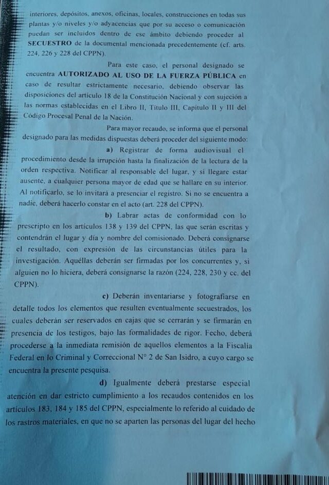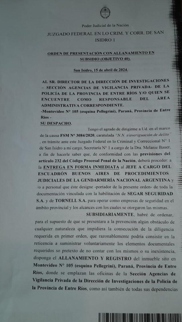 Los allanamientos, ordenados por la Jueza Federal de San Isidro Sandra Arroyo Salgado, se realizaron en las oficinas del segundo piso de la empresa de energía donde se secuestraron los contratos con la empresa de seguridad, desde el año 2016 hasta el 2019, hasta ese momento la dirigía Tortul. El trabajo del personal de Gendarmería continuó en el barrio privado Puerto Urquiza en la zona de Bajada Grande, donde tiene la vivienda el empresario, y en un estudio de abogados.