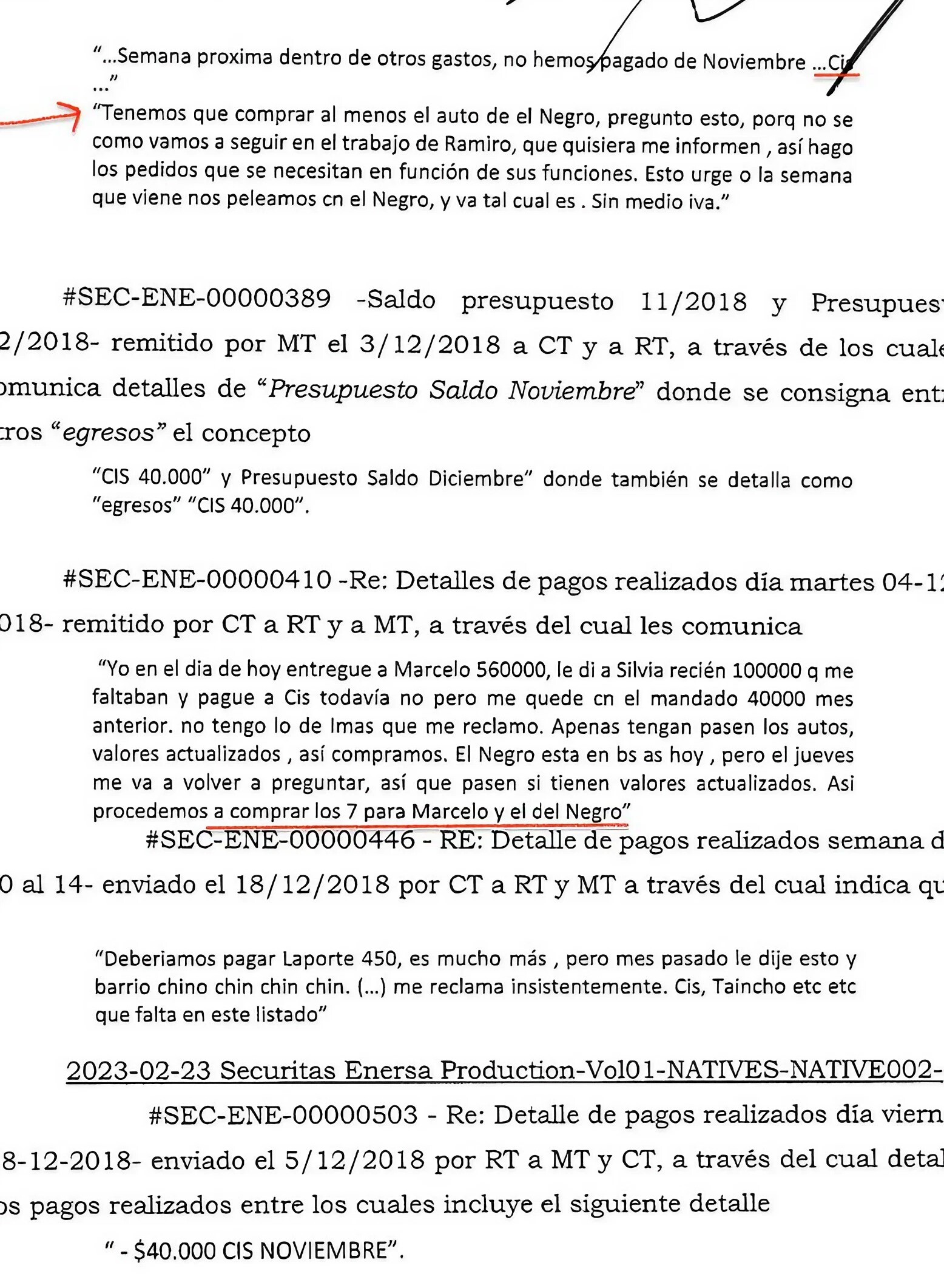 El otro que está complicado es Alejandro Cis, Gerente de Sector Logística de ENERSA durante el período investigado por la Jueza Arroyo Salgado. En los mails analizados aparece su nombre como destinatario de pagos de los hermanos Tortul. Además, CIS emitió un dictamen técnico sobre la viabilidad de la transferencia contractual a favor de SEGAR S.A., a pesar de los déficits señalados en su propio informe.