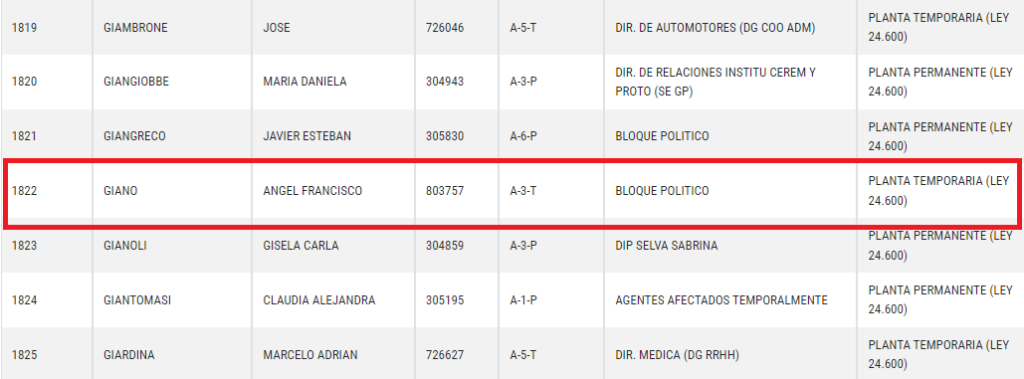 Tampoco Giano ha explicado, ni ha defendido, la cantidad de contratos de militantes de su espacio en la Cámara Baja provincial, que lo convirtieron en el Rey, que ni siquiera se presentaban a trabajar y que, en algunos casos hasta fueron recategorizados, y que también pretendían ser mantenidos por el Estado tal como su jefe político.