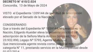 CompartirEn una nueva demostración de que está cotizando bastante alto en estos tiempos donde la Ley Bases está empantanada en el Senado, Kueider ha conseguido algo que está tácitamente prohibido en los municipios por falta y achique de recursos, y se llevó como adscripta una empleada del municipio de Concordia, … Sigue leyendo A Kueider, le siguen cumpliendo los CAPRICHITOS. Se llevó ADSCRIPTA una Agente Municipal de Concordia