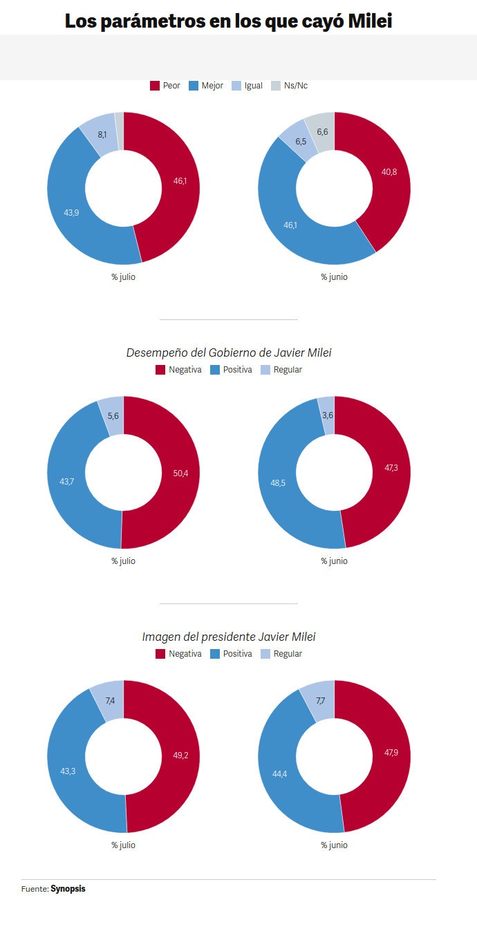 El informe de Synopsis también confirma en algunos cuadros la vigencia de la nueva grieta en torno a la figura de Milei. Gente que ve todo bien y gente que ve todo mal.