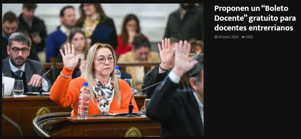 Los legisladores tratarán el expediente N° 15.017, proyecto de ley por el que se crea un régimen especial de «boleto docente» para los usuarios del sistema de transporte provincial de colectivos de pasajeros en sus servicios urbanos, suburbanos e interurbanos y de larga distancia, destinados a docentes pertenecientes a instituciones educativas públicas de gestión estatal y de gestión privada con aportes del Estado en todos los niveles, incluidos los de formación profesional, bachilleratos y de escuelas especiales que tengan asiento en la provincia de Entre Ríos.