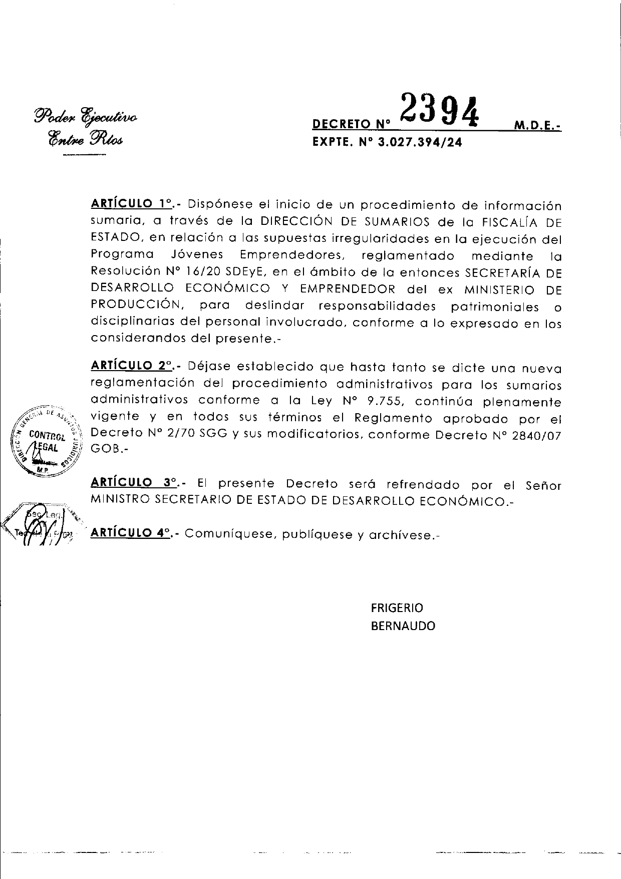 Debido a esto, el gobernador de la provincia decidió iniciar un proceso de investigación (información sumaria) para determinar las responsabilidades del personal involucrado en la Secretaría de Desarrollo Económico y Emprendedor. Esta investigación será llevada a cabo por la Fiscalía de Estado.