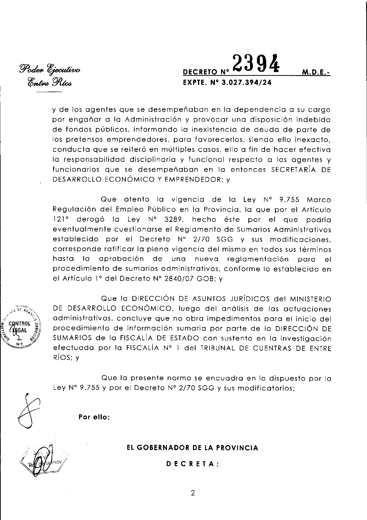 Debido a esto, el gobernador de la provincia decidió iniciar un proceso de investigación (información sumaria) para determinar las responsabilidades del personal involucrado en la Secretaría de Desarrollo Económico y Emprendedor. Esta investigación será llevada a cabo por la Fiscalía de Estado.