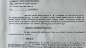 CompartirEn respuesta a la denuncia presentada por el abogado paranaense Dr. Miguel Ángel Aranguren, la Justicia entrerriana ha decidido abrir una causa penal contra la ex vicegobernadora María Laura Stratta, investigando la presunta comisión de diversos delitos durante su gestión en la Legislatura y, eventualmente, en su paso por el … Sigue leyendo Apertura de Causa Penal Contra Ex Vicegobernadora por Denuncia de Corrupción