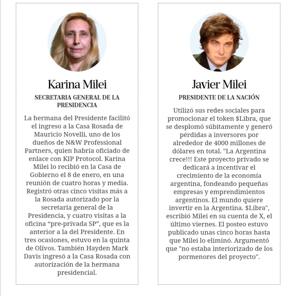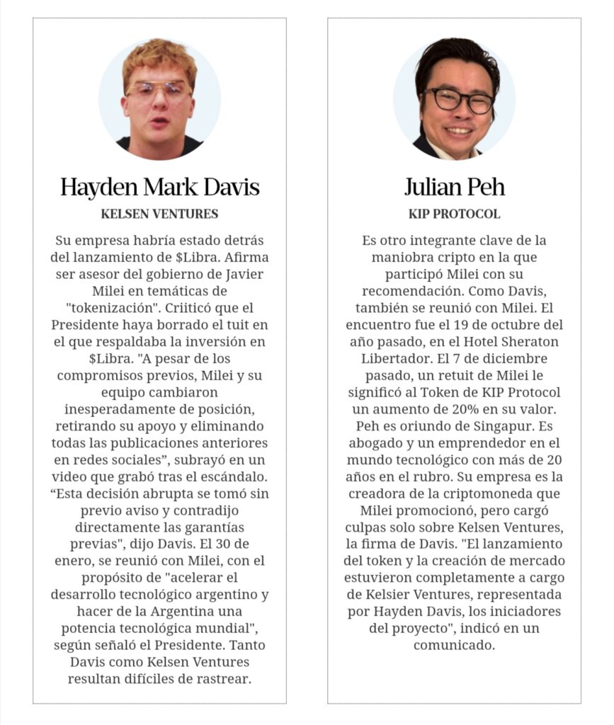 El llamado “reporte de operaciones criminales” señaló de manera explícita el rol que asumió el presidente Javier Milei, como también apuntó los roles que asumieron el estadounidense Hayden Mark Davis, el singapurense Julian Peh y los “empresarios” argentinos Mauricio Novelli y Manuel Terrones Godoy, de origen español.