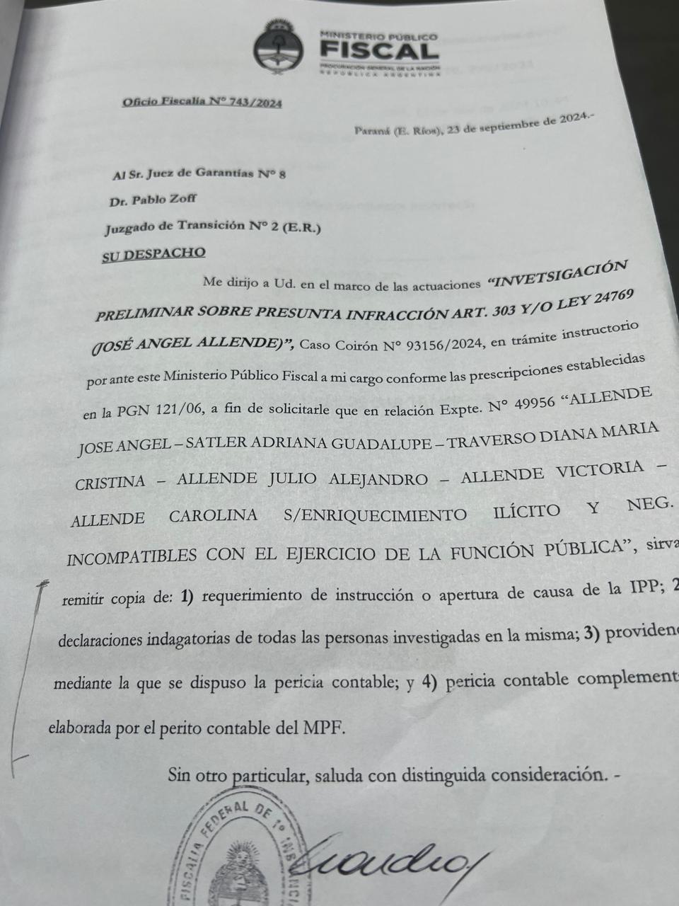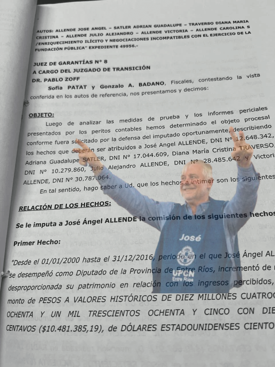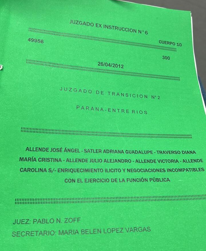 En el marco de la investigación judicial, el exdiputado de la Provincia de Entre Ríos, José Ángel Allende, junto con su círculo familiar, enfrenta graves acusaciones por enriquecimiento ilícito y negociaciones incompatibles con el ejercicio de la función pública. El expediente, caratulado como «Allende José Ángel y otros s/ enriquecimiento ilícito y negociaciones incompatibles con el ejercicio de la función pública», lleva el número 49956 y está a cargo del Juzgado de Garantías N° 8, bajo la dirección del Dr. Pablo Zoff.