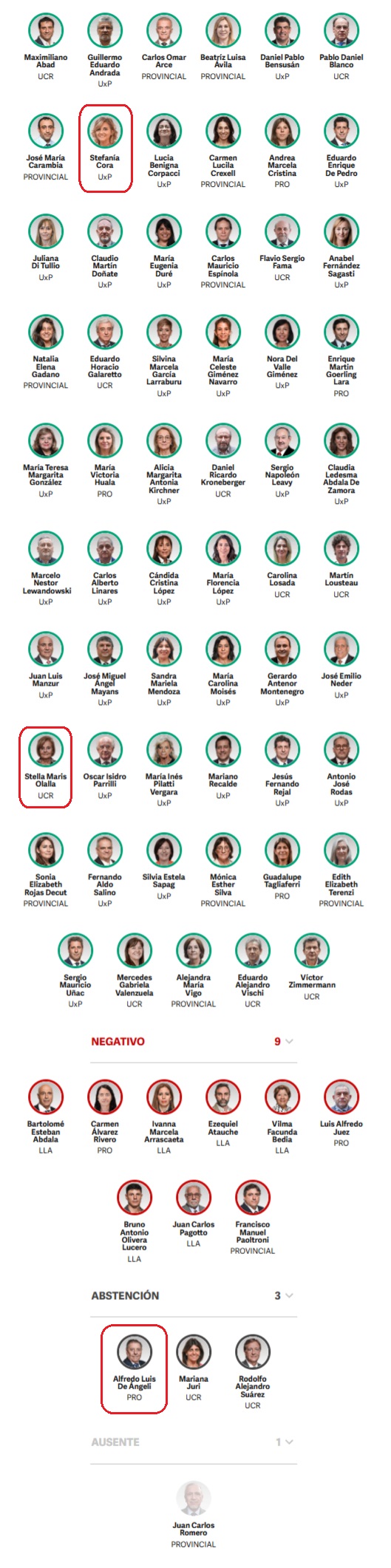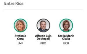 Por Entre Ríos, la senadora peronista Stefanía Cora y la radical Stella Olalla, votaron en contra del veto. Mientras que Alfredo De Angeli se abstuvo. Cuando fue aprobada la Ley, DeAngeli había votado a favor y Olalla estuvo ausente.