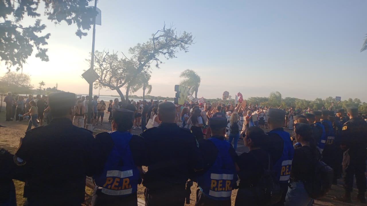 Desde las 16 horas la costanera fue lugar de cita de los violetas y también de opositores. Algunas escaramuzas se produjeron alrededor de las 17 cuando manifestantes en contra de la presencia de Milei decidieron bajar desde la zona del Arzobispado a la costanera. La primera línea de policías fue desbordada y superada, pero había más líneas de contención que cumplieron su función. A partir de ese momento ya no hubo más eventualidades. Se observó un despliegue de las fuerzas de seguridad orquestado hasta el mínimo detalle donde no quedó margen para que los grupos de protesta pudieran avanzar.