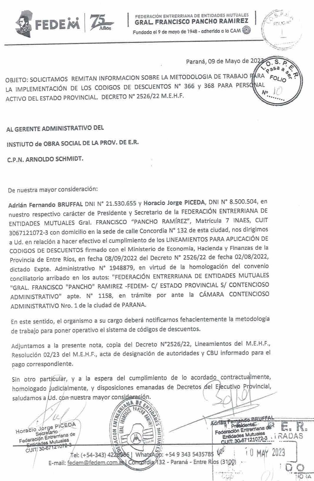 La investigación se sustentó en un pedido de informe al IOSPER (Instituto de Obra Social de la Provincia de Entre Ríos). A través de su presidente, el organismo respondió formalmente, amparándose en el derecho de acceso a la información pública, y remitió el expediente administrativo solicitado.