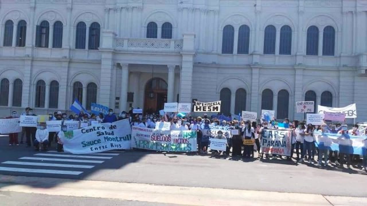 Un muy claro ejemplo se dio en marzo, apenas unos días antes de que se declarara el aislamiento preventivo obligatorio, cuando los trabajadores de Casa de Gobierno salieron de sus oficinas espontáneamente para reclamar por el paupérrimo estado de los sanitarios.